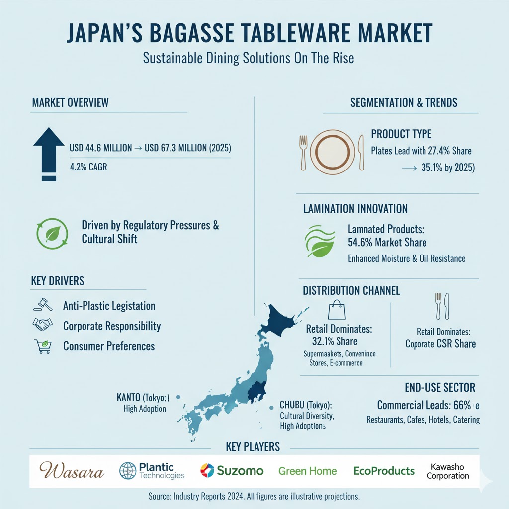 NEWARK, DE, UNITED STATES, October 13, 2025 /EINPresswire.com/ -- Demand and Trend Analysis of Bagasse Tableware Product in Japan stands at the forefront of the Asia-Pacific region's sustainable packaging revolution, with industry valuations projected to expand from USD 44.6 million in 2025 to USD 67.3 million by 2035, reflecting a compound annual growth rate of 4.2%. This growth trajectory positions Japan as a critical case study in the successful integration of environmental policy, consumer behavior modification, and commercial sector transformation within one of the world's most quality-conscious markets.