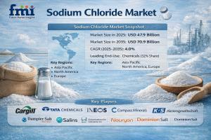 NEWARK, DE, UNITED STATES, April 1, 2026 /EINPresswire.com/ -- The global sodium chloride market is valued at USD 47.9 billion in 2025 and is projected to reach USD 70.9 billion by 2035, growing at a CAGR of 4.0%. Market growth is driven by the essential role of sodium chloride as a primary feedstock in chlor-alkali production, enabling the manufacturing of chlorine and caustic soda used across plastics, pharmaceuticals, and water treatment industries.